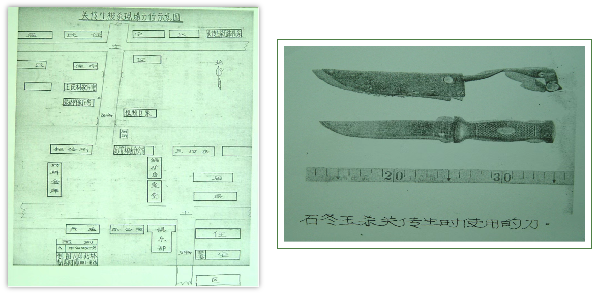 石东玉案犯罪现场方位图及凶器图