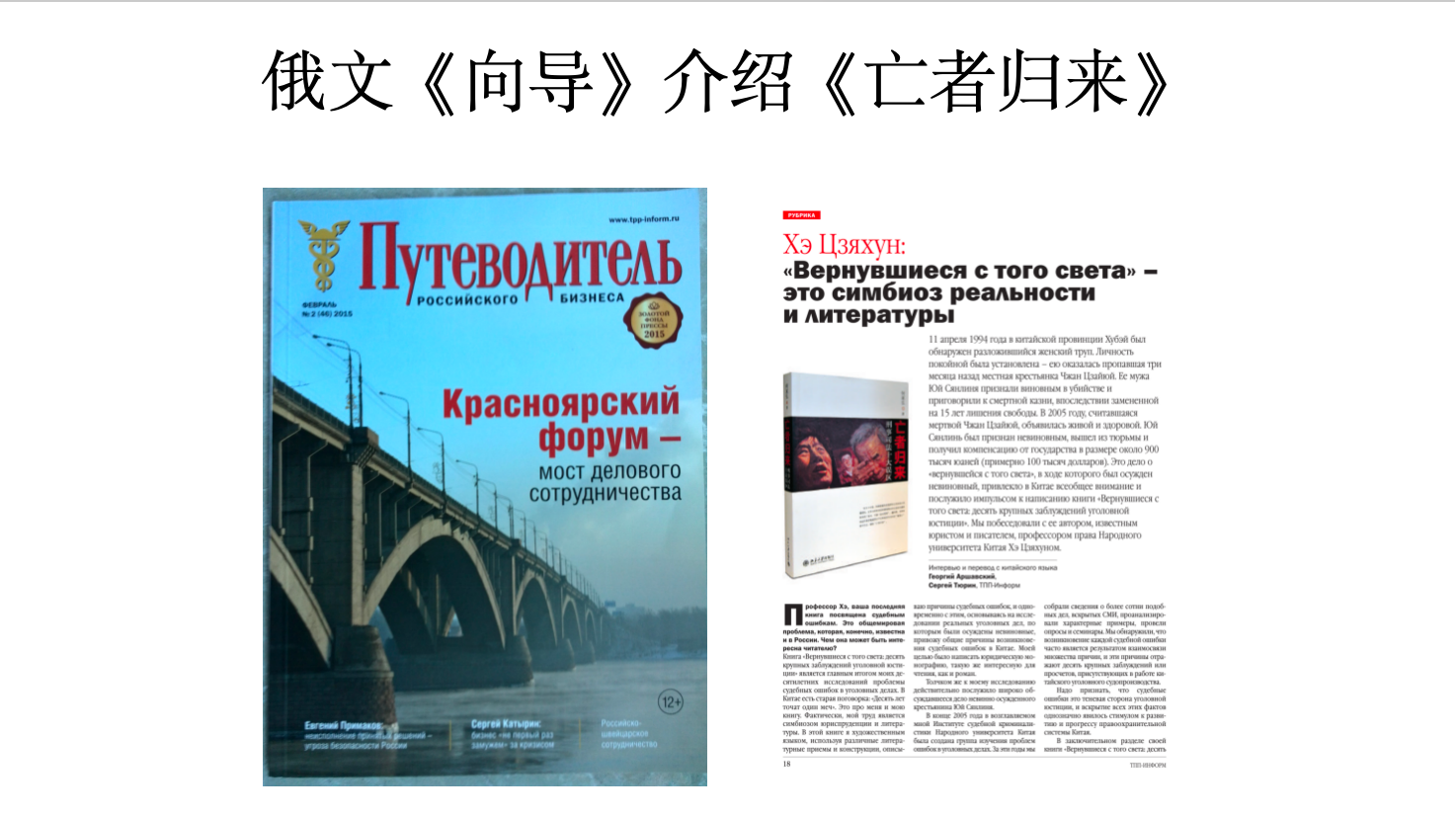 他将研究成果与文学表达相结合,撰写了《亡者归来》等纪实文学作品,以文学笔法揭示司法现实,推动法治思想的传播与普及。该书已被译为英、法、德、日等十余种语言,成为“中国法学走出去”的代表作之一。