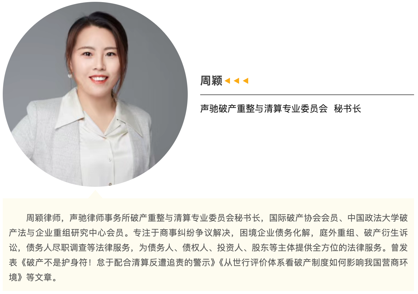 会上,周颖律师也结合多年实务经验,围绕破产程序中的企业挽救与资产价值最大化路径同与会专家进行了交流,提出在当前经济结构调整背景下,破产法律制度不仅是市场主体退出机制,更是企业重组再生、挖掘运营价值的重要平台。周颖律师表示,应进一步发挥破产保护与重整功能,助力困境企业化解债务危机、实现可持续发展。