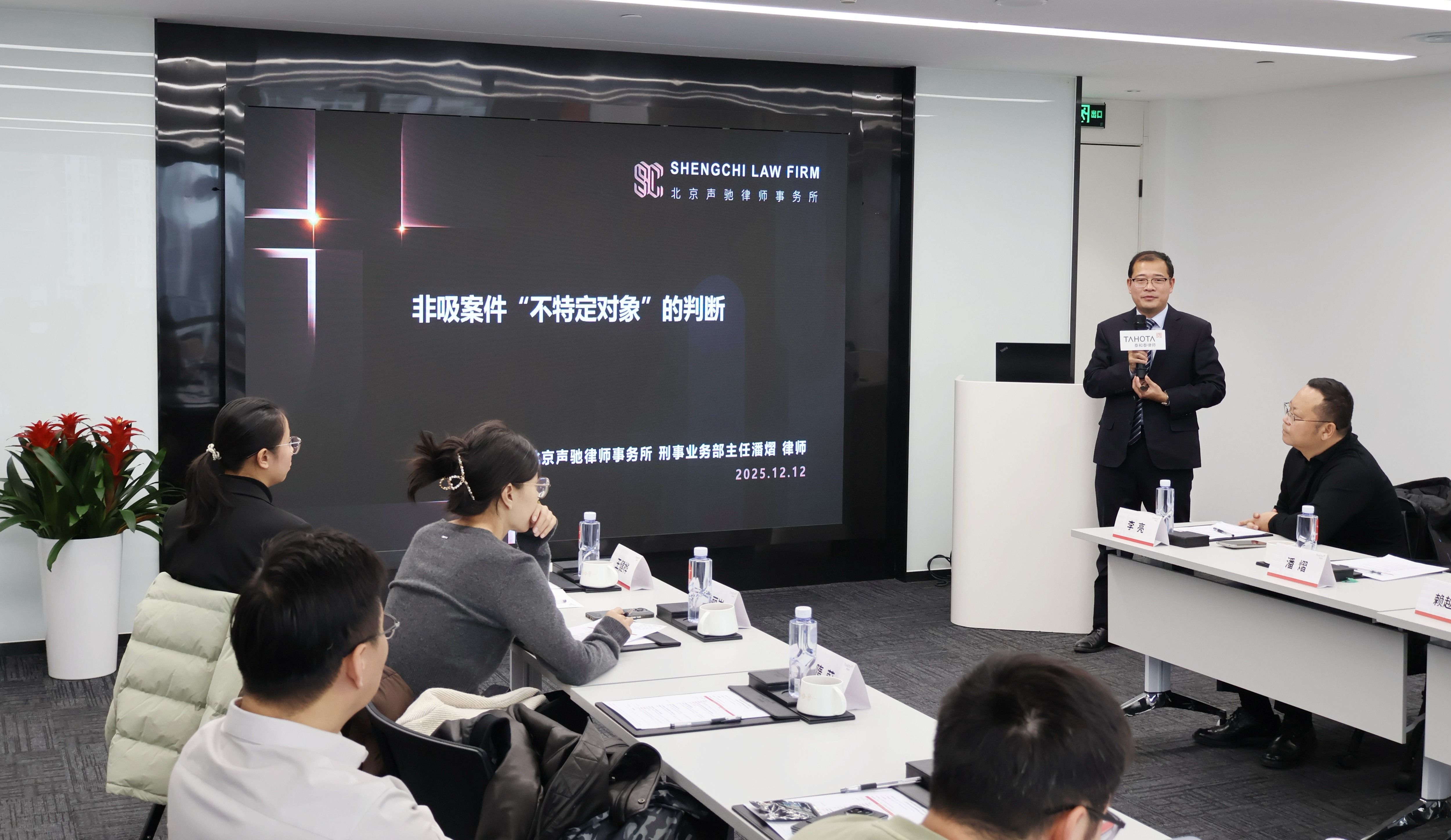 12月12日上午,由北京朝阳区律师协会刑事业务研究会主办的金融犯罪辩护实务热点问题研讨会在远洋国际中心成功举办。本次研讨会聚焦“非法集资类犯罪刑事辩护要点”,吸引了多位资深律师及实务工作者参与交流。声驰律师事务所刑事业务部主任、朝阳区律师协会刑事业务研究会委员潘熠律师受邀参加,并围绕非法吸收公众存款案件中“不特定对象”的司法认定问题作主题分享。