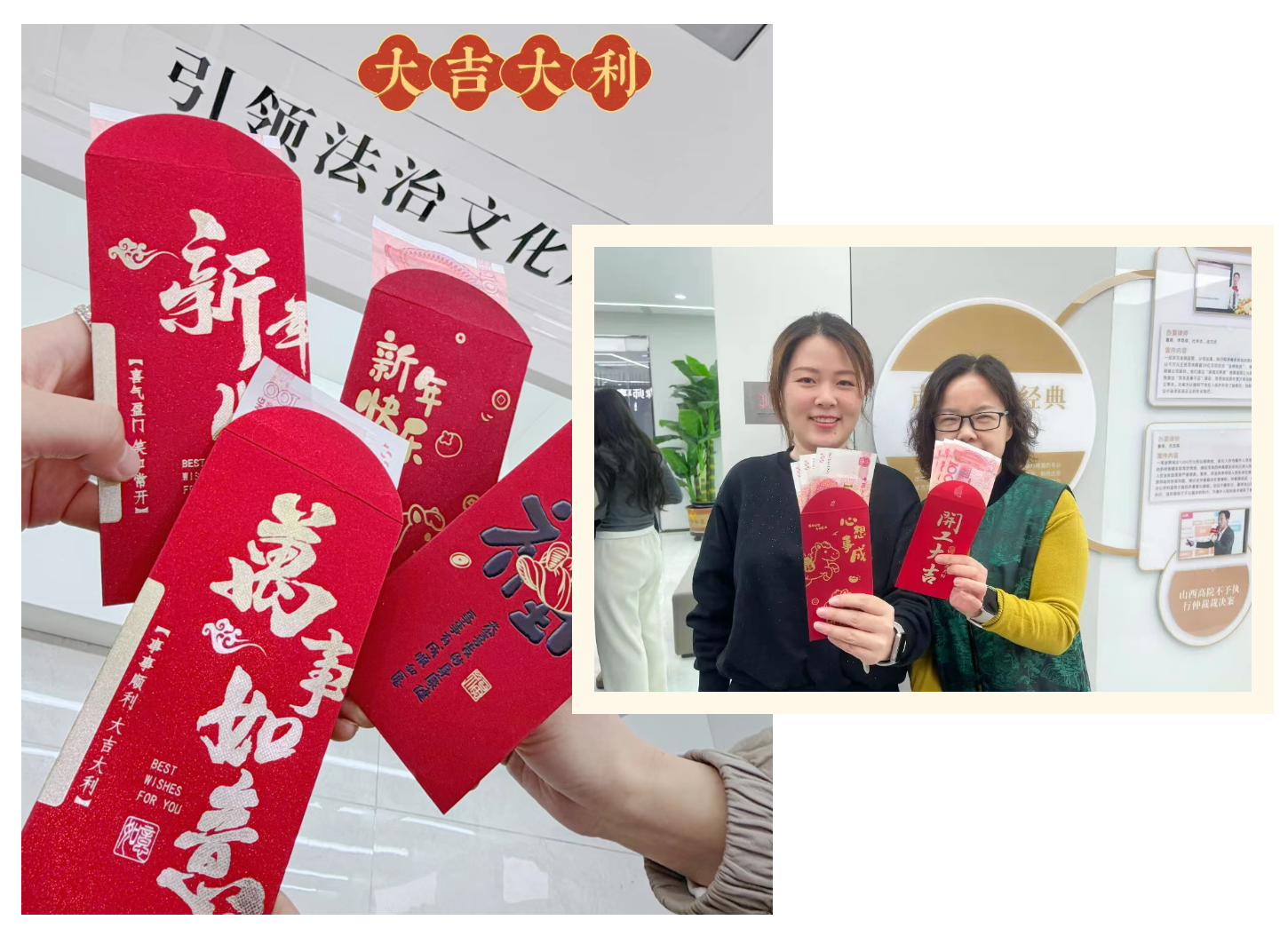 人勤春来早,奋进正当时。一声声温暖的问候,一句句殷切的期望,一个个满载祝福的红包,不仅传递着律所对每一位同仁的关怀与感谢,更凝聚起新一年砥砺前行的信心与力量。